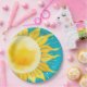 Aquarellmalung Sonne in Sunshine gelb, orange und blau Thema Babydusche Papier Teller mit Text " kommt der Sohn" können Sie personalisieren auf Ihre Bedürfnisse. Ideal für die Jungen-Dusche. Entsprechende Artikel, die Sie in der Sammlung von PatternDigitPics finden können.