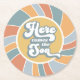 Hier kommt die Son Groovy Retro Sun Baby Dusche Runder Pappuntersetzer