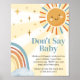 Machen Sie Ihre Veranstaltung mit dieser Sunshine Baby Dusche mit unserem niedlichen und liebevoll bedruckten Don't Say Baby Sign mit einem bezaubernden Boho Baby Shower Thema besonders. Laden Sie diese Touch herunter, personalisieren Sie sie und schaffen Sie bleibende Erinnerungen! BS1048 A