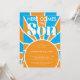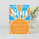 Die Babydusche "Here Comes The Son" in Retrotypografie auf orangefarbenem und blauen Sonnenbrust-Hintergrund ist die fröhliche und sonnenbeständige Einladung dieses jungen Jungen. Einfach anpassbar.