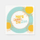 Leider ist beim Bestellvorgang nicht die Größe angegeben, zumindest habe ich es nicht gesehen. Der Name "Duschen"-Servietten ist etwas seltsam :-) Aber man kann aus verschiedenen Designs auswählen und es sieht ganz nett aus. Ich würde mir aber noch viel mehr verschiedene Farben und Muster wünschen! Insgesamt eine nette Idee für ein personalisiertes Accessoire zu allen möglichen Feiern. Der Druck ist OK, er ist nur ganz leicht unscharf.