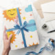 Das ist niedlich lächelnder Cartoon Suns Muster in verschiedenen glücklichen Ausdrücken mit Wolken und Sternen. Es ist ein tolles Verpackungspapier für Babydusche mit Sonnenschein