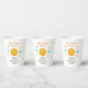 Das ist niedliche Baby Dusche Party Papiertasse mit hier kommt das Sonnenthema mit niedlich lächelnden Sonnenwolken und Sternen . Sie können die Details des Designs ändern, indem Sie die Schaltfläche Personalisieren verwenden.