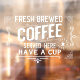 Hier serviert frisch gebrühter Kaffee Fensteraufkleber