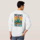 Das Design des T - Shirt "Dreams Grow Here" zeichnet sich durch eine ruhige, aufregende Szene aus, in der zarte Blume und Pflanze rund um den Text blühen und Wachstum und Sehnsucht symbolisieren. Die Worte "Träume wachsen hier" werden in einem eleganten, fließenden Schriftart geschrieben, der nahtlos mit der umliegenden Natur verschmilzt. Die Farben sind weich und erdig - sanfte Grüntöne, Blues und Pastelltöne - und rufen eine ruhige und hoffnungsvolle Atmosphäre hervor. Das Gesamtdesign fühlt sich Bio und inspirierend an, wie ein Garten voller Möglichkeiten, der den Träger einlädt, seine Träume zu verwirklichen.