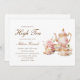 Elegant bridal shower invitation featuring a pastel teapot and tea cups illustration with gold accents paired with serif and script fonts in which your personalized information is written in. Check out our store for more items from this collection.