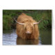 Hochlandrinder baden im Fluss Wey, Guildford, England.