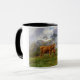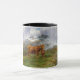 Dieses Design zeigt ein Gemälde von Rosa Bonheur (1822-1899), einer französischen Künstlerin, die am besten als Tiermalerin bekannt war. Es zeigt einige Hochlandrinder in einer bergigen Landschaft. Highland Rind ist eine Kuhrasse mit langen Hörnern und einem langen Shaggy Fell. Im Hintergrund gibt es schneebedeckte Berggipfel; die Berge sind von Wolken umgeben.