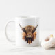 Highland Coo Greeting Mug- single highland cow- face on with horns and white background.