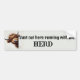 Niedlicher Hochlandkuh-Autoaufkleber mit dem Satz: "Just hier rennend mit der HERD. Niedlicher Aufkleber für Hochland-Kuh-Liebhaber, Nutzfahrzeuge oder einfach nur zum Spaß.