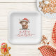 Highland Cow in Weihnachtsmannmütze Frohe Weihnach Pappteller
