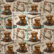 Highland Cow Morning Coffee Cozy Farmhouse Pattern Stoff
