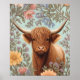 Highland Cow Pastel William Morris Inspired Floral Poster