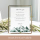Herzlich willkommen zu Ihrem Fest mit diesem eleganten 8x10 Hochzeitsmenü-Schild aus der Highland-Sammlung von Redwood & Vine Design Co. Mit sanften, grünen Gebirgsbildern und raffinierter moderner Typografie ist es eine wunderbare Art, Ihre Mahlzeiten zu präsentieren. Passen Sie Ihre Kurse an und drucken Sie auf der Zuhause oder wählen Sie eine professionell gedruckte Version für ein poliertes Empfang-Display. Ideal für rustikale, naturlich inspirierte oder Hochzeiten in Urlaubsort.
