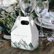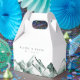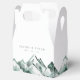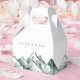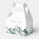 Diese personalisierte Gastgeschenk Hochzeit-Box ist Teil der Highland-Kollektion von Redwood & Vine Design Co. und eignet sich hervorragend für rustikale, Outdoor- oder Hochzeiten in Urlaubsort. Das Design besteht aus handbemalten Wasserfarbengipfeln in sanften grünen Tönen, gepaart mit individualisierbarem Text für Namen und Datum. Ideal für das Verpacken von süßen Leckereien, kleinen Geschenken oder Naschkatzen-Zuhause-Goodies, fügt diese stilvolle Gefälligkeitsbox Ihrer Feier eine landschaftliche und raffinierte Touch hinzu.