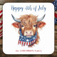 Highland Kuh 4. Juli Red White Blue Patriotic Quadratischer Aufkleber