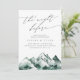 Set den Ton für einen unvergesslichen Abend mit dieser Probe-Dinner-Einladung aus der Highland Collection von Redwood & Vine Design Co. Ein überwältigendes, handgeschriebenes Drehbuch, das "the night before" liest, treibt über eine stimmungsvolle grüne Bergbild, gepaart mit klassischer Serifentypografie für die Veranstaltungsdetails. Ob Ansammlung in einer Hütte, in einer Hütte oder in einem Berghaus - diese Einladung ist der ideale Ort, um Ihre Hochzeitsfeier stilvoll zu gestalten.
