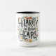 Whimsical und spielerisch: Der Text "Hilarity in High Heaps" ist in einem farbenfrohen, handgeschriebenen Stil mit skurrilen Doodles und Akzenten geschrieben. Das Design ist lustig und leicht, perfekt für die Tasse eines Kindes