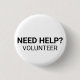 Benötigen Sie Hilfe Volunteer Schwarz-Weiß mit benutzerdefiniertem Organisationsnamen einfache elegante Button-Taste. Vollständig anpassbarer schwarzer Text, weißer Hintergrund. ERSTELLE SELBST. Ideal für Unternehmen, Büros, Veranstaltungen, Konferenzen, Bibliotheken, Gemeindezentren, gemeinnützige Organisationen usw.