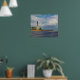 Landschaftliches Poster, das ein bisschen Südflorida abbildet, wie man vom Wasser aus sieht. Der Turm ist das Hillsboro Inlet Light von 1907, das an der Mündung der verkehrsreichen Wasserstraße liegt, die vom östlichen Ufer des Atlantiks ins Landesinnere führt, und eine maritime Sehenswürdigkeit, die den Seefahrern vertraut ist.