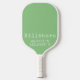 Stilvolles Pickleball-Paddel mit Hillsboro Oregon Längengrad und Breitengrad-Koordinaten im Vintagen Schriftart der Schreibmaschine auf hellgrünem Hintergrund.