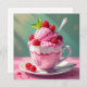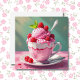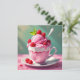 Ein leerer Notecard, um sich selbst oder einem Freund eine Notiz zu schreiben. Die Abdeckung hat eine Tasse Himbeereis.
