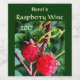 Auf dieser hübschen, fruchtigen Himbeerweinflasche mit zwei reifen, saftig roten Himbeeren auf braunen Ästen, umgeben von grünen Blätter, können Sie den Text ganz einfach personalisieren.