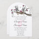 Vintage Liebesvogel Hochzeitseinladungen. Der Wein "Deep Raspberry Mulled" blüht auf einem grauen Ast für ein rustikales romantisches Ambiente.