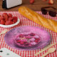 Himbeeren, Papier-Teller, Lebensmittel, pastellfarbene Farbpalette, weiche Tiefe und zarte Texturen, Wohngestaltung, ästhetische, generative Inhalte, KI-Generation, niedliche Papier-Teller, Papier-Teller für jeden Anlass