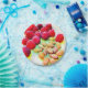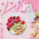 Papier Teller mit einem digital veränderten Foto von Mandeln und Himbeeren. Dem Foto wurde ein Aquarellfilter hinzugefügt. Klicken Sie auf Anpassen!, um den gewünschten Schriftart auszuwählen.