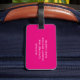 Himbeerrosa Gepäckanhänger mit Lederband. Maßgeschneiderte mit Monogramm Tags für Koffer und Beutel. Personalisieren Sie mit Ihrem eigenen Namen initial. Moderne Gepäcketiketten mit Adresse auf der Rückseite. Farbe und Schriftart können geändert werden. Stilvolles Template-Design mit schlanker Typografie und Handgriff auf Koffer auf Rollen Silhouette. Beidseitiger Druck. Spezielle Geschenkidee für Freunde und Familie. Geeignet für Männer, Frauen und Kinder.