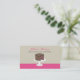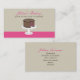 Eine einfache Visitenkarte, die eine Illustration eines Schokoladenkuchens mit Himbeerfüllung auf einem weißen Tortenständer enthält. Text ist braun und rosa. Stellen Sie die Vorderseite mit Geschäftsnamen und kurzer Beschreibung ein. Personalisieren Sie den braunen Text auf der Rückseite mit Ihrem Namen, Jobtitel und Kontaktinformationen.