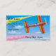 Hohes Fliegensegelflugzeug-Flugzeug mit buntem Dampf schleppt Set gegen einen helle blaue Wolke gefüllten Himmel.
