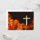 Himmel und Hölle konzeptuelles Foto. Weißes Kreuz fotografiert in der Nacht, mit unscharfen Hydrangeas im Vordergrund.