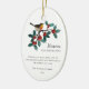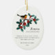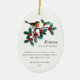 Himmel und Natur Sing Wintervogel auf der Heiligen Keramik Oval Weihnachtsschmuck... Ein süßer Wintervogel ragt auf farbenfrohen Sprüngen roter Heiliger Beeren auf unserem Vintagen ovalen Weihnachtsschmuck mit der Überschrift "Himmel und Natur Sing" in Schrift und klassischer Serifentypografie. Ein herzlicher Weihnachtsgruß lautet: "Wir wünschen Ihnen in dieser und im kommenden Jahr Frieden, Liebe und Freude." Personalisieren Sie mit Ihrer Unterschrift und Jahr knapp unter den Urlaubswünschen. Alle Texte können auf der Personalisierungsvorlage leicht überarbeitet werden.