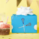 Modernes und modisches lockeres Sporthimmelblau Lacrossemuster mit Lacrossestöcken und einem weißen Gummiballhintergrund. Sportgeschenkideen für Männer und Jungen und Mädchen. Ideal für Geburtstage.