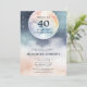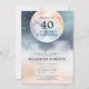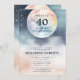 Hier sind bis 40 Jahre auf Planet Earth Celestial Night Sky 40. Geburtstag Party Einladung... Von seiner Position in einem schönen Sternenhimmel, hält ein Aquarellplanet Erde diese wichtige Botschaft: "Hier ist bis 40 Jahre auf dem Planeten Erde". Unterhalb des Himmelsblau erschaffen weiße Wolken und Sanddünen einen eleganten Hintergrund für die Anzeige aller Details des Party, einschließlich des Namens der Geburtstagsfrau, des Datums, der Uhrzeit und des Ortes des Party, sowie der UAWG. Ein himmlischer Start für einen 40. Geburtstag. Alle Einladungstexte können auf der Personalisierungsvorlage leicht überarbeitet werden. Die Rückseite der Einladung wiederholt das Wasserfarben Erde und Himmel Thema, ohne Text.