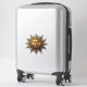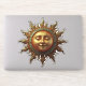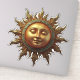 Das serene Gesicht einer stilisierten goldenen Sonne.