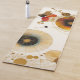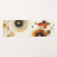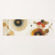 Eine abstrakte Komposition mit miteinander verbundenen Kreisen und strahlenden Mustern in Gold, Blau und Rot, die ein kosmisches oder himmlisches Thema mit einem modernen künstlerischen Flair hervorruft.