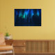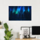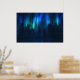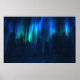 Blau und grün schimmert sich über einem nördlichen Wald.