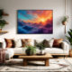 "Sky Ocean" fängt das magische Zusammentreffen von Bergen und Wolken bei Sonnenuntergang ein. Lebendige und sanfte Farben verschmelzen zu einer ätherischen Szene – perfekt für Räume, die Schönheit, Leichtigkeit und visuelle Inspiration suchen. Ein Fenster zum Erhabenen