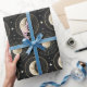 Elegantes Mondphasen- und Himmelsmuster-Geschenkpapier mit zunehmenden Monden, Sternen und strahlenden Mond Details auf dunklem Hintergrund. Ideal für Astrologie-Liebhaber, Mond-Enthusiasten, spirituelle Suchende, Sterngucker und Fans des mystischen himmlischen Stils.