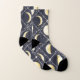 Dieses ätherische, sich wiederholende Muster zeigt eine himmlische Abbildung des bezaubernden Mondzyklus von Neu bis Vollständig, jede Phase umgeben von einem zarten Diamantgitter von Sternen und Reben. Set gegen ein tiefes Mitternachtsblau, lädt dieses Monddesign zum Wundern des Kosmos und der tiefen Stille der Nacht ein.