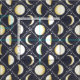 Dieses ätherische, sich wiederholende Muster zeigt eine himmlische Abbildung des bezaubernden Mondzyklus von Neu bis Vollständig, jede Phase umgeben von einem zarten Diamantgitter von Sternen und Reben. Set gegen ein tiefes Mitternachtsblau, lädt dieses Monddesign zum Wundern des Kosmos und der tiefen Stille der Nacht ein.