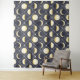 Dieses ätherische, sich wiederholende Muster zeigt eine himmlische Abbildung des bezaubernden Mondzyklus von Neu bis Vollständig, jede Phase umgeben von einem zarten Diamantgitter von Sternen und Reben. Set gegen ein tiefes Mitternachtsblau, lädt dieses Monddesign zum Wundern des Kosmos und der tiefen Stille der Nacht ein.