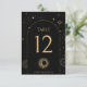 Himmelsmystische personalisierte Hochzeitsszene mit Bogenrahmen mit galaxischer Milchstraße mitten im Himmel, Sternstaub, Halbmond und anderen astrologischen Zeichen in Schwarz und Gold. Diese Tischnummer ist leicht editierbar. Wenn Sie Hilfe bei der Anpassung dieses Produkts benötigen oder mehr passende Produkte für diese Sammlung benötigen, senden Sie mir bitte eine Nachricht über Zazzle.
