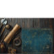 Eine Vintage Sternenkarte, Sternbild, goldene Galaxie auf blaugrünem Hintergrund.