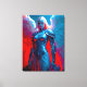 Himmlische Engelsschönheit in silberner Rüstung Leinwanddruck