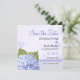 Dieses hübsche Ankündigung Datum freihalten besticht durch eine originelle botanische Aquarellmalerei von Karla Dornacher mit Himmlischen Blauen Hydrangea mit handgemalten Details, die Ihnen ein romantisches und sanftes Ambiente verleihen. Die Einfachheit des Stils ist klassisch und zeitgemäß mit einer Touch von Eleganz. Der Text Ihrer Einladung ist einfach zu bearbeiten und anpassbar. Auf der Rückseite der Einladung finden Sie mehr von den vielschichtigen Zierelementen mit Platz für die Namen der Braut und des Bräutigam, einen Bibelvers oder Ihr Lieblingszitat. Wenn Sie Fragen zu Designoptionen haben oder weitere Hilfe benötigen, schreiben Sie mir bitte.