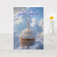 Erinnern Sie sich an einen verstorbenen Vater zu seinem Geburtstag. Ein Kuchen in den Wolken mit einer Geburtstagskuze. Worte der Unterstützung im Inneren. Eine großartige Art, sich an ein geliebtes Soul zu erinnern.